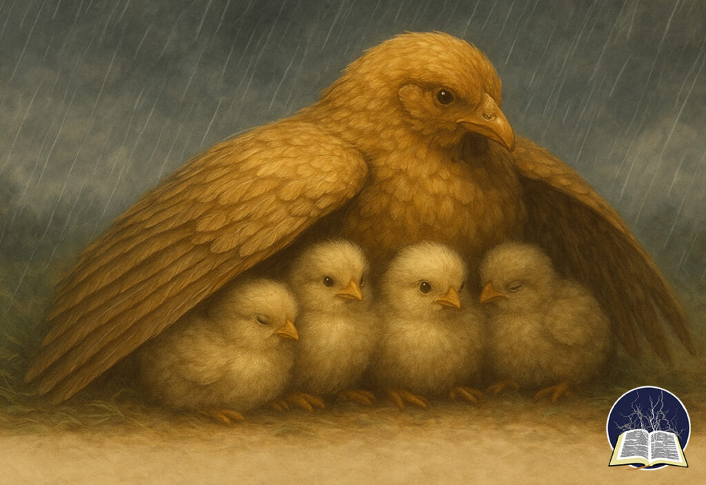 Like chicks in a nest when the thunderclouds roll,